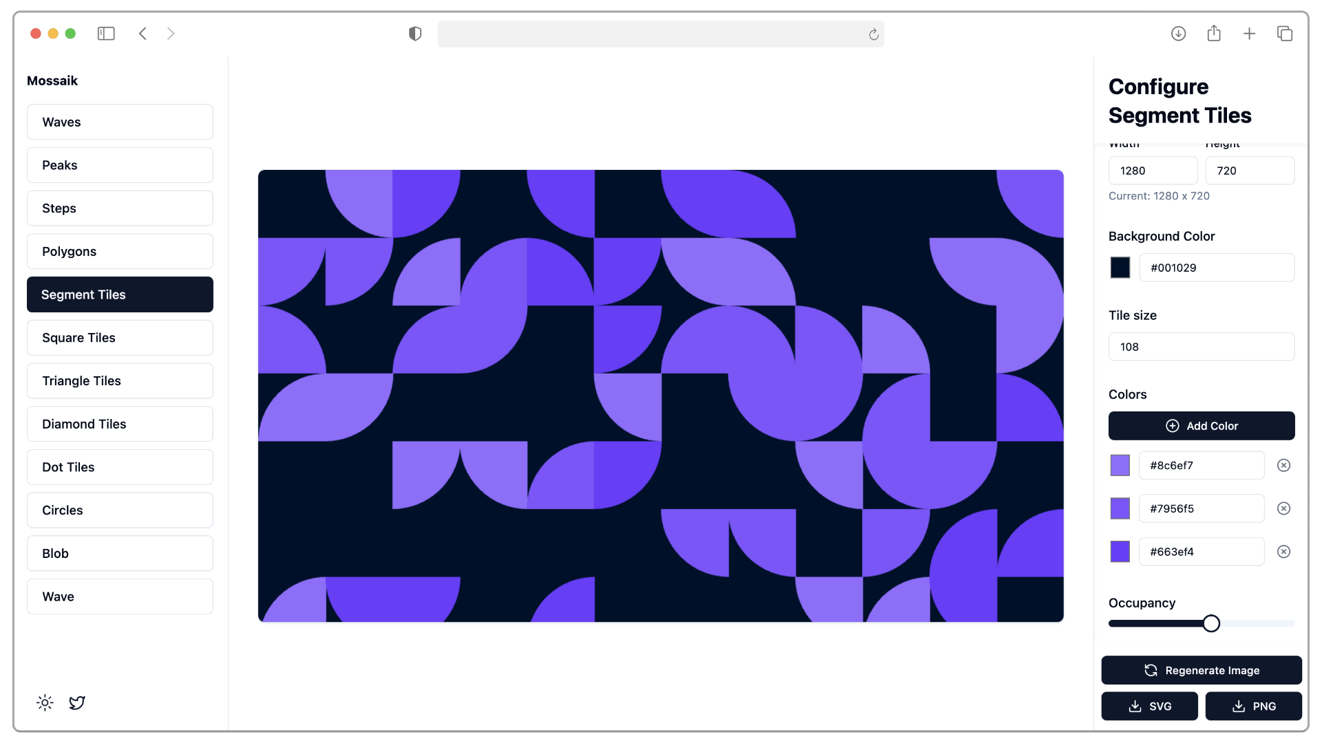 Select the options for the number of waves, angle, color, and color mode (gradient or color spin) for your background